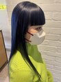 艶髪,エレガンス,フェイスフレーミング,ワンカール,バレイヤージュ,ロブ,ショート,フィッシュボーン,大人かわいい,ボブ,前下がり,斜めバング,アシンメトリー,伸ばしかけ,大人ボブ,センターパート、艶ロング、ブルー