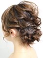 ふわふわ編み込みアップスタイルです。コテは後れ毛と毛先だけで、全体にコテ巻きしなくてもねじって編むことで引き出した所が自然にふんわりします。要所だけコテを使えばツヤ感もでます。