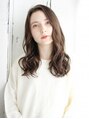 透け感のあるグレージュカラーに動きのあるミックスカールスタイルです☆色味がより柔らかい雰囲気を出すので女性に人気のスタイルです♪