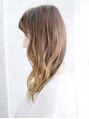 毛先に向かってグラデーションカラーの細かいミックスカールスタイルです☆短いバングが可愛い人気のスタイルです♪