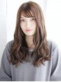 厚めの前髪にゆるく落ちるAラインスタイルです☆ゆるく大きなカールが髪の柔らかさを出す人気のアレンジスタイルです♪