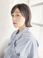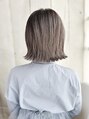 透け感のあるアッシュ系カラーに外ハネが可愛いアレンジボブスタイルです。重たく切られた毛先がクールな雰囲気を出す人気のスタイル です。