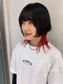 仕事上派手すぎるとダメだけど、ギリギリ怒られない所を攻めたデザインカラー!縛っている時はあまり目立たないけど、おろした時にかなり派手にわかるように工夫してブリーチを入れました。カットは、顔に沿うようにぶつっと感のあるレイヤーを段々に!