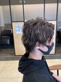 全体的に波打ちのウェーブをつけて無造作な仕上がりにしました。重めのスタイルでも軽く見せれます。