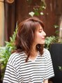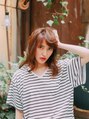 ふんわり無造作なルーズウェーブに。かき上げ前髪で大人っぽい雰囲気に。カラーはツヤのあるカッパーオレンジブラウン。ウェーブがあるのでアレンジをしても素敵です!Tシャツにジーンズというラフなスタイルはかっこいいイメージに