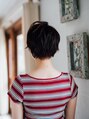 すっきりとしたシンンプルショート。耳かけアレンジで大人可愛いショートに☆全体にニュアンスでパーマをかけてふんわり感と動きをつけています。ショートバングやフリンジバングで雰囲気に変化をつけられます☆