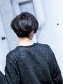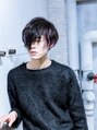オーバーとコントラストをつけたグランジショート。ナチュラルに動きをつけた毛先はアンニュイでセクシーな雰囲気に。サイドに入れたヴァイオレットのポイントカラーがアクセントになっています。かきあげてアップバングにするとトラッドな雰囲気。