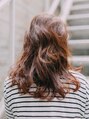 ふんわり無造作なルーズウェーブに。かき上げ前髪で大人っぽい雰囲気に。カラーはツヤのあるカッパーオレンジブラウン。ウェーブがあるのでアレンジをしても素敵です!Tシャツにジーンズというラフなスタイルはかっこいいイメージに