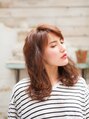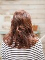 ふんわり無造作なルーズウェーブに。かき上げ前髪で大人っぽい雰囲気に。カラーはツヤのあるカッパーオレンジブラウン。ウェーブがあるのでアレンジをしても素敵です!Tシャツにジーンズというラフなスタイルはかっこいいイメージに