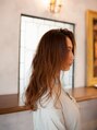 伸ばしかけのかたにもおすすめな抜け感たっぷりのゆるふわパーマ。ゆるめなニュアンスウェーブでアンニュイな雰囲気漂うミディアムスタイルに☆ほんのりピンクのヴェールカラーで柔らかさとツヤ感もプラスさせました。