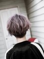 顔まわりをアシンメトリーにカットした個性派マッシュボブ。可愛くなりすぎないように縦長感と動きをプラス!毛先はブリーチを入れてから、ヴァイオレットアッシュグレーのグラデーションカラー☆ヴァイオレットを入れることで綺麗なくすみ感を出しています。