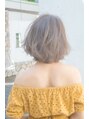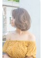 透明感のあるブラウンカラーで柔らかなカールが 大人可愛いナチュラルボブスタイルです♪ 目にかからない長さの前髪がポイント☆!! 目元が強調されて目力アップ効果◎