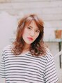 ふんわり無造作なルーズウェーブに。かき上げ前髪で大人っぽい雰囲気に。カラーはツヤのあるカッパーオレンジブラウン。ウェーブがあるのでアレンジをしても素敵です!Tシャツにジーンズというラフなスタイルはかっこいいイメージに