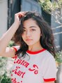 重ためのロングスタイルに、大きめなウエーブのパーマをかけたアメリカンチックなスタイルです☆バングも流しスタイルで大人っぽく、カジュアルな印象に!!カラーリングは派手すぎず、ナチュラルに、ダークブラウン系の色味で仕上げました☆