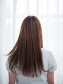 全体には重さを残したストレートスタイル。毛先に向かって軽さがでるようにアウトラインは前上がりにして表面にレイヤーをいれて自然なストレートに☆カラーは落ち着いたブラウンにヴァイオレットをプラスして深みとツヤ感を☆