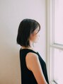前下がりボブの重めスタイルのボブ。目上で流れるナチュラルな流しバングのバランスがかわいいです☆ストレートな無造作感がルーズでアンニュイな雰囲気に。アッシュカラーでクールな印象。伸ばしかけやヘアアレンジにも◎オススメです!