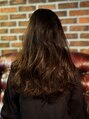 サイドパートバングのゆるい大きめのデジタルパーマのロングです。カラーリングはナチュラルブラウンて大人っぽさと柔らかさの出るカラー。デジタルパーマはアイラインくらいからかかる少し上からふわっと感の出るパーマです。