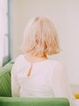 重ためのワンレングスボブに、耳上からコテでランダムに巻いてくせ毛風にっ仕上げました!!! 毛先は内巻きと外巻きにして動きを出すととても可愛く元気な感じに♪ ハイトーンなので重くても重たく見えないのがGOOD☆☆