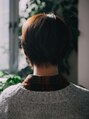 ショートボブにカットしているので襟足はタイトにすっきりと収めつつ、サイドには少し長さを残し気味にすることでボーイッシュすぎない女性的なシルエットにしてあります。前髪は流しバングやショートバングでも似合わせ可能です!