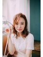 ミディアムロングにカールを加えたパーマスタイルです!カールは全体に大きくゆるっとしているのでがんばりすぎていない感じがちょうどいいスタイル!スタイリングはツヤ感とウェット感をだすためにオイル系のスタイリング剤がおすすめ!
