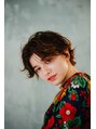 前下がりにカットしたジェンダーレスな抜け感ショートボブ。動きが出るようにブラウンをベースにハイライトを入れてあります!