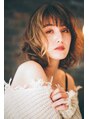 外ハネベースにランダムなカール感を加えて重ためのスタイルもふんわりしたスタイルに。外ハネのカジュアル感を抑えるために目にかかる長めのバングでクールな雰囲気に仕上げています。