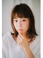 胸上でカットしたミディアムスタイル。ゆるやかにウェーブをつけてウェットし仕上げればアンニュイな雰囲気の完成!前髪にもカールをつければキュート感がアップ。