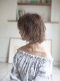 空間をあけるようにカットしたシンプルボブ。毛先中心にランダムにパーマをかけて無造作感を演出。外国人風な透け感と柔らかさがでるように明るめアッシュカラーにしています。トレンドの赤リップも似合うおすすめスタイルです☆
