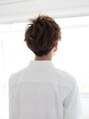 サイドとバックをすっきりと刈り上げたツーブロックのショートスタイル。表面は長さを残すことで短すぎず、動きもつけやすいショートに。前髪は根元を軽く立ち上げることで縦長感がでてよりすっきりとした印象になります。