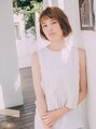 明るめベージュカラーの無造作ロブ☆くせ毛風なくしゅっとスタイリングでエフォートレスなスタイルに。短めシースルーバングでオシャレ感もアップ!!