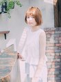 明るめベージュカラーの無造作ロブ☆くせ毛風なくしゅっとスタイリングでエフォートレスなスタイルに。短めシースルーバングでオシャレ感もアップ!