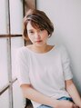 グラボブベースのショートスタイル!毛先にゆるくワンカールすることで全体に柔らかさが増してかっこよくなりがちなスタイルも可愛いよりになります!カラーもウィービングを軽く入れることにより立体感ができ一味ちがうスタイルになります!