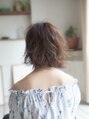 空間をあけるようにカットしたシンプルボブ。毛先中心にランダムにパーマをかけて無造作感を演出。外国人風な透け感と柔らかさがでるように明るめアッシュカラーにしています。トレンドの赤リップも似合うおすすめスタイルです☆
