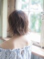 空間をあけるようにカットしたシンプルボブ。毛先中心にランダムにパーマをかけて無造作感を演出。外国人風な透け感と柔らかさがでるように明るめアッシュカラーにしています。トレンドの赤リップも似合うおすすめスタイルです☆
