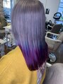 20代30代小顔ゆるふわミディグレージュグラカラーパープルブルー