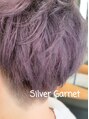 シルバーガーネット。ややパープルを多めに入れることで後々のシルバーヘアも楽しめるヘアカラーです。※髪質によってブリーチの抜け具合は異なります