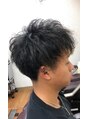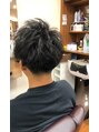 お客様のヘアスタイル。ゆるめのツイストスパイラルパーマをかけたマッシュスタイル。パーマをあててることで束間や毛の動きをしっかり出せます!ツイストもゆるめにすることで少し柔らかい印象にしたメンズヘアスタイルです。