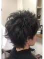 【マッシュウルフ×ランダムパーマ】やわらかい印象のマッシュウルフにちょい強めのランダムスパイラルパーマをあてたスタイルです。パーマでボリューム感やエアリーな質感が出せます。襟足のウルフ感もコンパクトに!