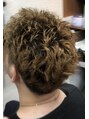 【かきあげオールバック】ブリーチだけでハイトーンにした髪の毛にグリースでリバース方向にかきあげたオールバックスタイル。脱色しただけだと毛髪のパサつき感がきになるのでウェット系のスタイリング剤でカバーしてます。