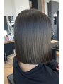 カットと縮毛矯正で自然にまとまるボブスタイル。 ツヤ感と柔らかさを残したストレートで、乾かすだけで綺麗なシルエットにクセや広がりが気になる方にもおすすめです