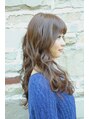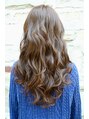 ロングレングスのウェーブスタイルです。重ならないランダムな毛流れはパーマでかけた強めのウェーブによるもので、ラフで無造作な動きが楽しめます。中間巻きでフォワードリバース交互に巻いてかけ、抜け感を出せば外国人風ウェーブの完成です。