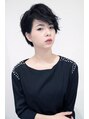 グラデーションボブベース。バングは鼻の頭ぐらいに長めに切るのがポイント。パーマはランダムにミックス巻き。髪色はトレンドの黒髪をいかして辛口モードに!!ショートで甘髪に飽きた方にお勧めなエッジィな質感×黒髪で!![髪質改善/デザインカラー/越谷]