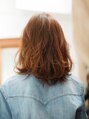 毛先にゆるくパーマをかけることで、結べる長さをキープしつつ、肩でハネてしまうというお悩みも解決します。その日の気分で分け目を変えることもできるし、スタイリングも簡単にできます。ラフなTシャツスタイルも素敵に見えます!【稲毛】