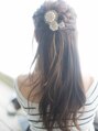袴にもおすすめなハーフアップ。ポイントで入れた編み込みがかわいいです。顔まわりの髪の毛をゆるふわに巻いておくと華やかになって可愛さアップ☆結婚式の2次会や女子会にもおすすめです♪前髪の似合わせもご相談ください!