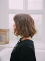 肩上の前下がりボブにしっかりカールをつけたパンキッシュボブ。まゆ下の少しラウンドさせた前がみがかわいい印象に☆ほぼノンレイヤーなのでパーマが広がりすぎないように毛量と質感を調整しています。ぺたんとなりやすい方にもおすすめです☆【稲毛】