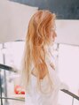 1度はやってみたいロングのハイトーン☆全体は淡いミルクティーで金髪にならない抜け感を出しています。中間~毛先にはブリーチでさらに明るめなハイライトを細かく入れて立体感がでるようにしています。トリートメントは必須です!!