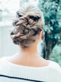ツイストと編み込みを使ったアレンジスタイルです! 全体的にツイストをして崩しも入れてまとめました。 ロングの方でもコンパクトにまとめることができて、かわいいスタイルです☆ 前髪がある方は前髪を出してもかわいいスタイルです☆【稲毛】