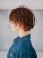 くしゅくしゅパーマでオシャレなショートボブ。表面の髪が長めのなので少し見える襟足は軽めにしてバランスよく仕上げました。パーマは中間から毛先にかけて大きめのウェーブと、表面は根本からロットを巻いて立ち上がるようにしています。【稲毛】