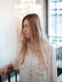 ハイトーンカラーのくせ毛風ロング。ブリーチ後にミルクティーアッシュをオンカラー。色味をおさえた透明感のあるカラーに仕上げています。毛先はコテでゆる巻きにして外国人風な柔らかいくせ毛感を出しています。【稲毛】