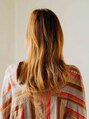 無造作な毛先の動きがポイントのミディアムロングスタイル。縦長なシルエットになるようにレイヤーを入れているので、動くと揺れる軽い仕上がりに。カラーは透明感のあるベージュ系で、細かくハイライトを入れて立体感をプラス。【稲毛】
